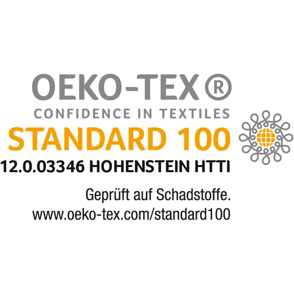 - Getest op schadelijke stoffen en gecertificeerd volgens “Standaard 100 door OEKO-TEX® Confidence in Textiles”, productklasse 1 voor baby’s (12.0.03346)