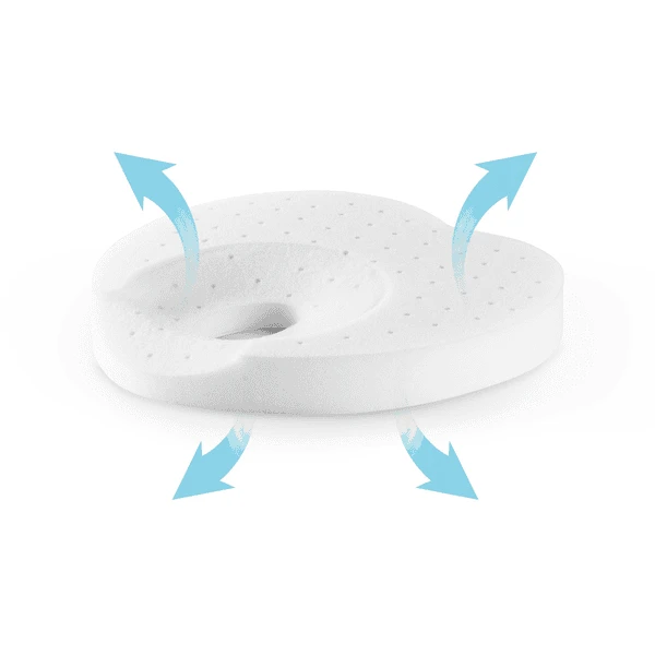 - Specifieke kanteling & vorm voor een optimale drukverdeling op de schedel van de baby om plagiocephalie te voorkomen