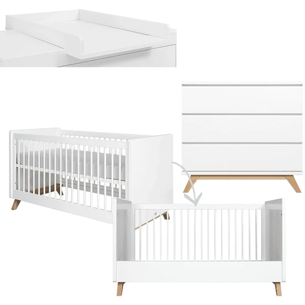 Bopita Babykamer Lynn 2-delig met ombouwbaar commode 70 x 140 cm wit / natuur