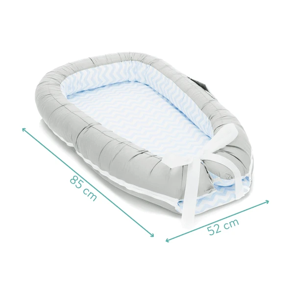 De Fillikid Knuffelnest heeft een heel bijzondere eigenschap, zodat u het kunt blijven gebruiken als uw kind wat groter is: de knusse zijbescherming kan met een ritssluiting worden verwijderd en als nestslang in het kinderbed worden gebruikt. Dit geeft u een 2in1 functie en bespaart u het geld voor een extra nestelslang.