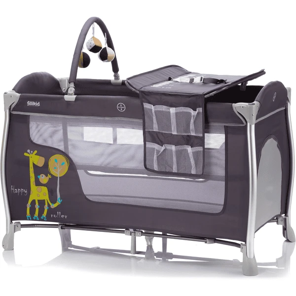 Het reisbed heeft een afneembare speelboog, passende verschoonmogelijkheid met praktische vakken, een transporttas en twee wielen.