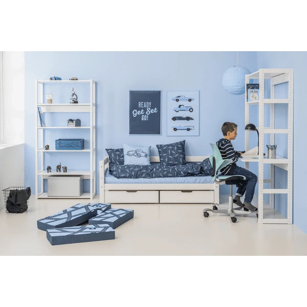 Legplank met bureau voor het Storey opbergsysteem van Hoppekids . De sectie is 80 cm breed en kan afzonderlijk worden gebruikt of om een rekkensysteem uit te breiden. Het bureau-element creëert de perfecte werkplek voor uw kind.