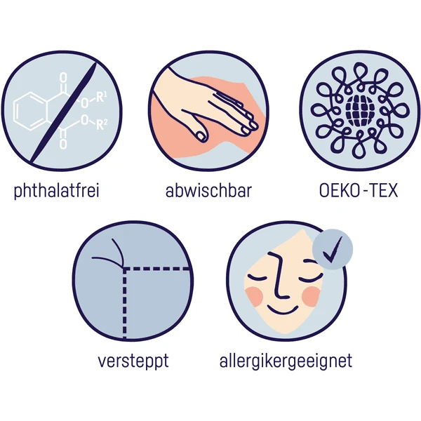 Gemakkelijk schoon te maken en af te vegen verschoonkussen in een schattig ontwerp. De hoes is een ftalaatvrije folie gevuld met polyetherschuim. De folie kan eenvoudig met een vochtige doek schoongemaakt worden.