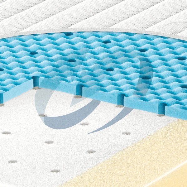 - Het koudschuim met open poriën met noppenprofiel op het oppervlak en de verticale ventilatiekanalen zorgen voor een perfect slaapklimaat.