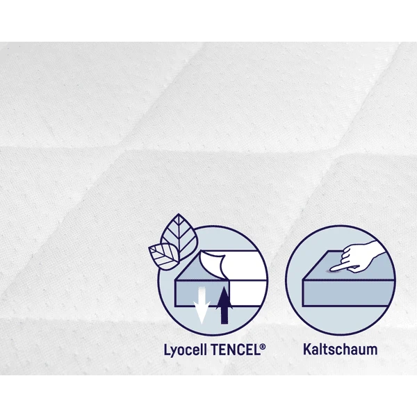 Hoogwaardige grondstoffen en hoge elasticiteit maken koudschuim tot een topmateriaal voor matrassen. Koudschuim is openporig en daardoor beter ademend dan ander schuim. Daarnaast is hij duurzaam. Koudschuim is milieuvriendelijk en speciaal geschikt voor kinderen met allergiëen. - Functionele hoes Lyocell TENCEL & Fresh & Dry