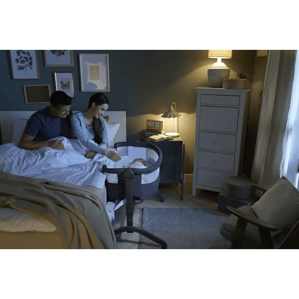 - Het bedje kan gemakkelijk aan het bed van de ouders worden vastgemaakt – zodat het kind ’s nachts altijd dicht bij u is. Het extra bed maakt het makkelijker om ’s nachts borstvoeding te geven en geeft uw baby een rustgevende slaap.