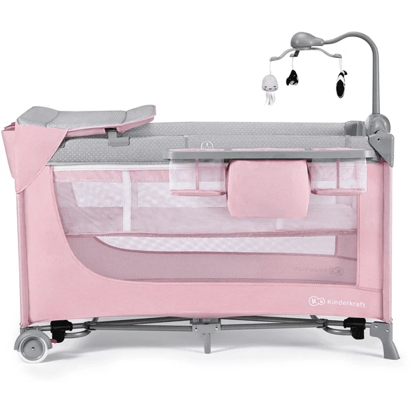 Kinderkraft Reisbedje LEODY roze met accessoires