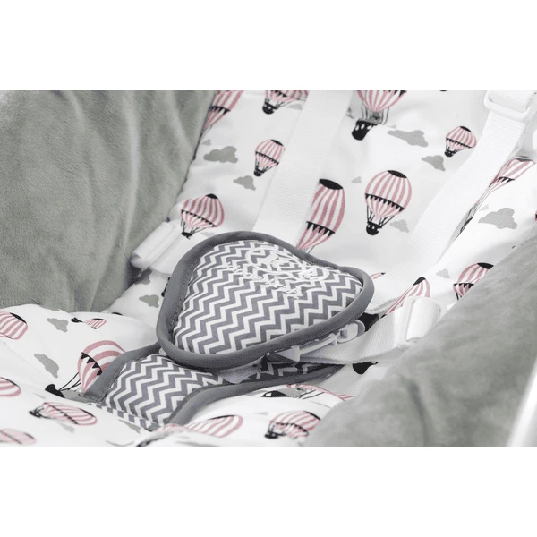 De zitting is gemaakt van twee zachte ‘knuffelbare’ stoffen: Polypeach stof en pluche stof aan de zijkanten van de zitting.