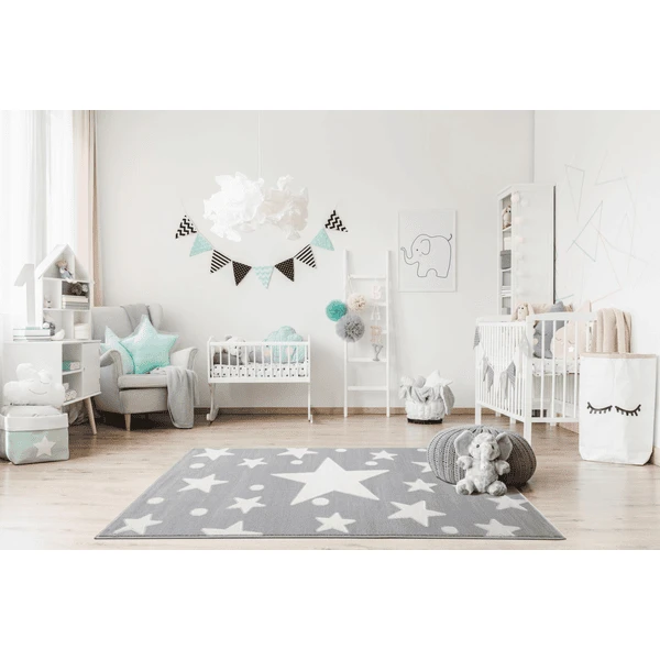 Het prachtige Estrella tapijt brengt de sterrenhemel in de kinderkamer. Op de grijze ondergrond staan talrijke sterren, die het een bijzondere charme geven. Door zijn moderne uitstraling oogt het tapijt niet alleen goed in de kinderkamer, maar kan het ook zorgen voor meer gezelligheid en harmonie in de rest van het huis. Natuurlijk wordt het ook gekenmerkt door hoge kwaliteit en slijtvaste eigenschappen!