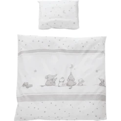 Het omkeerbare beddengoed van roba is een absoluut hoogtepunt in de babykamer. Het hoogwaardige 2-delige babybedlinnen bestaat uit een kussenhoes 40 cm x 35 cm en een dekbedovertrek 100 cm x 80 cm en is gemaakt van huidvriendelijk en ademend katoen.