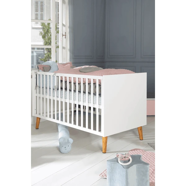 Het Mick-combinatiebed kan worden gebruikt tot uw kind 7 jaar oud is (of tot een lichaamsgewicht van 50 kg). Het kinderbed roba en het bed Junior zonder zichtbare schroeven aan de voorkant heeft een ligvlak van 70 x 140 cm. Als u van het ledikant een hemelbed wilt maken, zijn onze 4-delige ledikantsets, bestaande uit kussen, deken, baldakijn en nest, ideaal.
