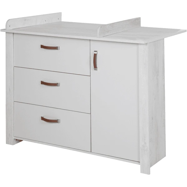De verschoonunit roba met verschoonblad is een echte allrounder en zal u nog vele jaren goed van dienst zijn. De stevige commode kan worden gebruikt als een verhoogd zitje voor uw kleuter, zodat u hem gemakkelijk kunt helpen met aankleden in een comfortabele staande positie. Later kan de commode gebruikt worden als commode in uw woonkamer of kinderkamer. De verschoonunit met lederlook handgrepen en geen zichtbare schroeven op modern is een van onze bredere versies. Met andere kindermeubelen uit de “Mila”-serie kunt u een stijlvolle kinder- of babykamer creĂ«ren. De verschoonunit is in Duitsland ontwikkeld en voldoet aan de huidige veiligheidsnormen volgens EN 12221 – 1+2:2008 + A1:2013. De “Mila” verschoonunit is eenvoudig te monteren.