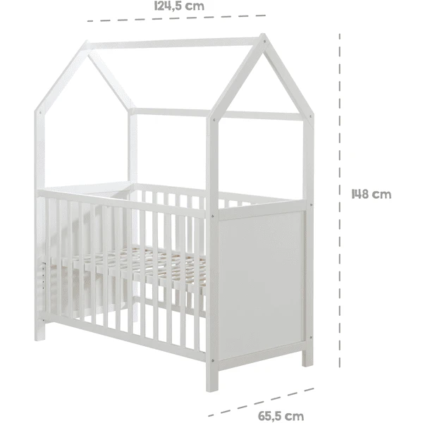 Het huisbed ROBA is een in hoogte verstelbaar en ombouwbaar bijzet- en babybed incl. lattenbodem met een ligvlak van 60 x 120 cm. Het duifkleurige meegroeibed kan worden gebruikt als bijzetbed bij het bed van de ouders of later om gemakkelijk in en uit het bed te stappen voor peuters dankzij de 5 verwijderbare glijsporten in het ledikantelement. Het huisbed en kan gebruikt worden vanaf de geboorte tot ca. 8 jaar. Met een paar eenvoudige handelingen kan het huisbed later worden omgebouwd tot een knuffelbare bank en kan dus lang worden gebruikt. Het FSC-gecertificeerde babybedje is gemaakt van grondstoffen uit duurzame en verantwoorde bosbouw. Het eenvoudig te monteren huisbed werd in Duitsland ontwikkeld volgens de nieuwste veiligheidsnormen EN 716 – 1:2017 + AC:2019. Alle materialen zijn getest en vrij van schadelijke stoffen. Verrijkt met textiel uit onze roba collecties is het heerlijk slapen en dromen in het mooie extra bed roba .