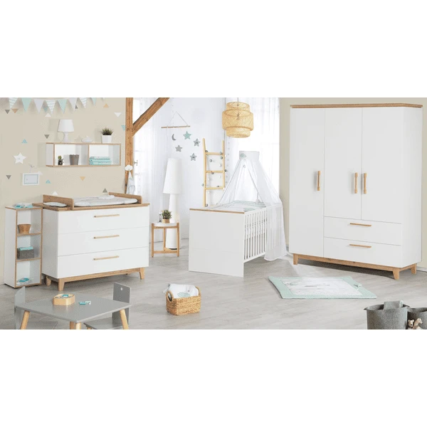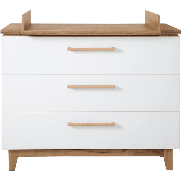 De luierwisselunit met luierwisselunit met een comfortabele luierwisselhoogte van 94 cm maakt de verzorging van de baby een plezier voor ouders en baby. Dankzij de volledige uittrekbaarheid van de bovenste lade is alles binnen handbereik bij de verzorging van uw baby. Zonder de luierwisselaar dient de luiertafel als commode. De luierwisselaar voldoet aan de huidige veiligheidsnormen volgens EN 12221 – 1+2:2008 + A1:2013.