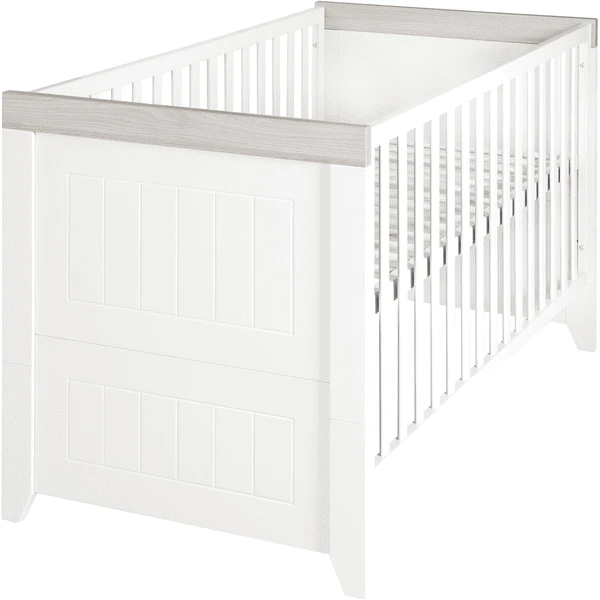 Het meegroeibed kan met de apart verkrijgbare ombouwzijden worden omgebouwd tot een bed van Junior en kan worden gebruikt tot de leeftijd van 7 jaar (of een gewicht van 50 kg). De bovenste positie van het in 3 standen in hoogte verstelbare ledikant is bijzonder handig om uw baby uit het bed te tillen. Met de 3 afneembare slipsporten kan uw kind veilig in- en uitstappen. Het kinderbed voldoet aan de huidige veiligheidsnormen volgens EN 716 – 1:2017 + AC:2019.