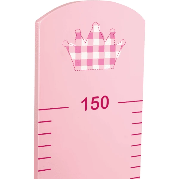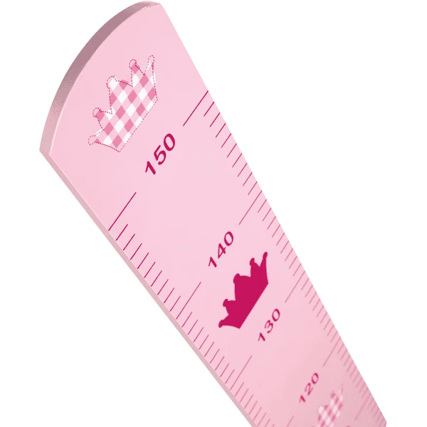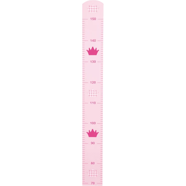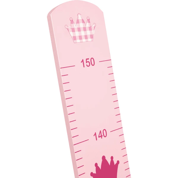 Gemaakt van MDF, met een lakafwerking en coole motieven, de meetlat kan eenvoudig aan de wand worden bevestigd via de uitsparing aan de achterzijde. De meetschaal van de lat begint bij 70cm en loopt tot 150cm. In combinatie met de vele andere artikelen uit de ‘kroontjes’ serie, kan de kinderkamer worden ingericht.