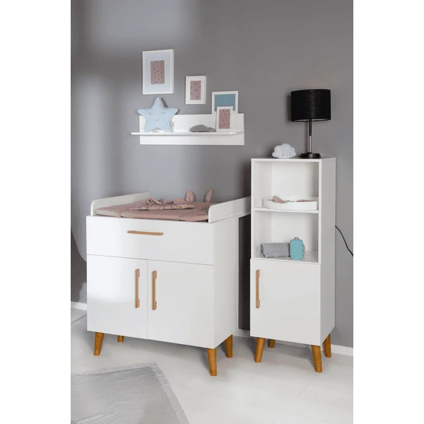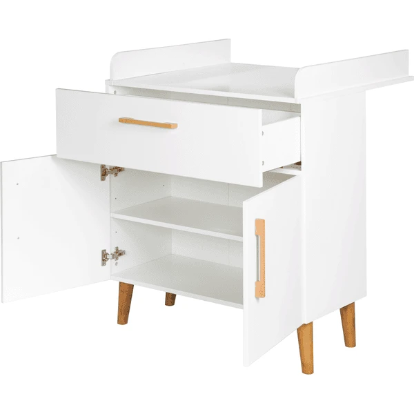 De luiertafel biedt voldoende opbergruimte voor verschoonspullen. Zo heb je alles bij de hand voor babyverzorging. Met andere kindermeubelen uit de “Mick”-serie kunt u een stijlvolle kinder- of babykamer creëren. De baby-wisselaar roba met verschoonunit is een echte allrounder en zal u nog jaren goed van dienst zijn. De stabiele verschoonunit kan worden gebruikt als een verhoogd zitje voor uw kleuter, zodat u hem gemakkelijk kunt helpen met aankleden in een comfortabele staande positie. Later kan de commode gebruikt worden als commode in uw woonkamer of kinderkamer.