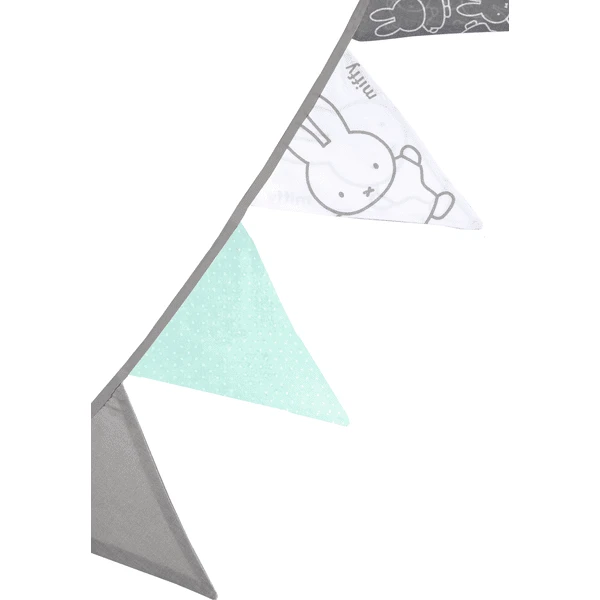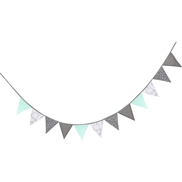 De roba wimperketting “nijntje®” van 65% polyester en 35% katoen is uitgerust met 12 wimpels op ca. 2cm afstand en kan in de wasmachine op 30°C voorzichtig gewassen worden. De totale lengte van de vlaggetjes is 3 m.