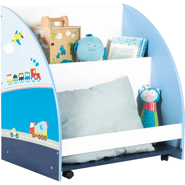 Kleine jongens zullen dol zijn op de blauwe speelplank met de stijlvolle voertuigprint!