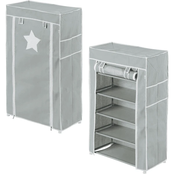 Als de textielkast in de kinderkamer zijn tijd heeft gehad, kan deze bijvoorbeeld goed dienen als opberg- en schoenenkast in de gang of als plank zonder de stoffen bekleding. De robuuste stof van de garderobe, die is getest op schadelijke stoffen, kan worden schoongeveegd en is eenvoudig te reinigen. De textielgarderobe is ontwikkeld in Duitsland en is eenvoudig te monteren dankzij het plug-in systeem met Metal staven en kunststof aansluitingen.