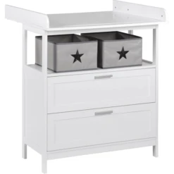 De twee lades aden met modern en zilveren handvatten bieden opbergruimte voor het verwisselen van gebruiksvoorwerpen en kleding. De roba luierwisselaar met afneembare luierwisselaar is een echte allrounder en zal u jarenlang goed van dienst zijn. Nadat u delen van de luierkast heeft verwijderd, blijkt de luierkast een ladekast te zijn zonder zichtbare schroeven in het bovenpaneel in uw woonkamer of kinderkamer. De wisseltafel roba “Hamburg” is ontwikkeld in Duitsland en voldoet aan de huidige veiligheidsnormen volgens EN 12221 – 1+2:2008 + A1:2013. De wisseltafel met wisselhulpstuk is eenvoudig te installeren en heeft een kantelbeveiliging.