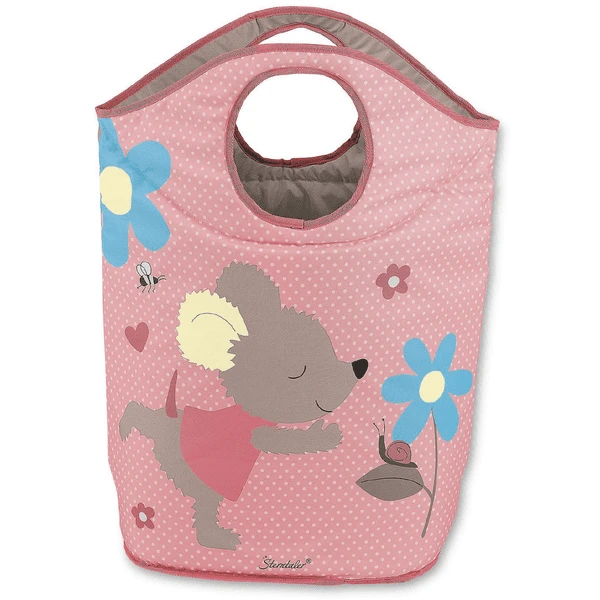 Praktische opvouwbare opbergmand met de motief-muis Mabel. Klap de twee handgrepen naar beneden en je hebt een ronde opening om de was in te gooien. Als de wasmand vol is, kan deze gemakkelijk worden meegenomen. Als het niet nodig is, kunt u het opvouwen om ruimte te besparen. De mand is ook geweldig om knuffels in op te bergen.