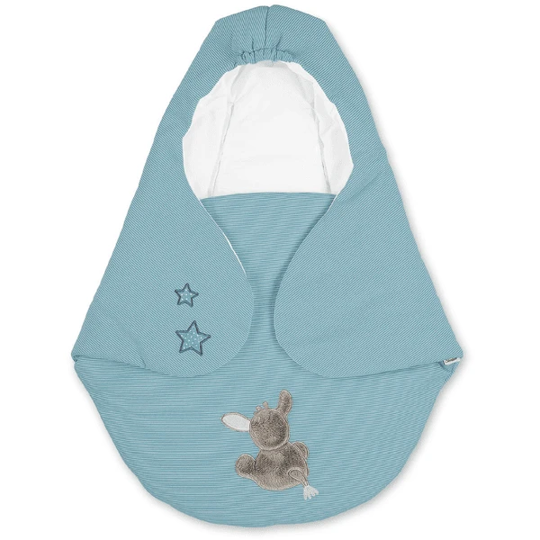 Gewatteerde jersey wikkeldeken met geappliquéerde ezel Emmi. Met Hydro-Cool voering – bijzonder comfortabel en temperatuurregulerend. Geschikt voor zitplaatsen met 3- en 5-puntsgordel (met drukknopen).