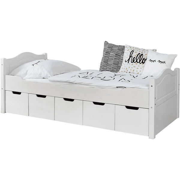 TiCAA Eenpersoonsbed Leni 100 x 200 cm wit grenen met 5 lades aden