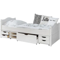 Aan beide zijden heeft het hekje twee snappers die om de eerste spijlen van het bedje vast geklikt kunnen worden met één hand.