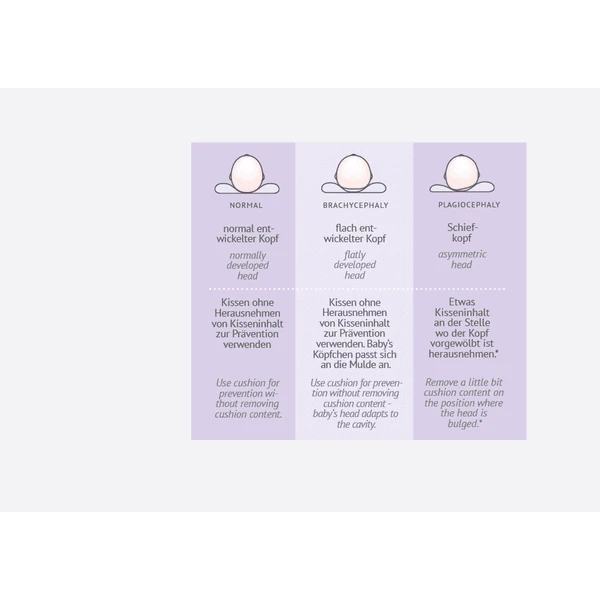 Het unieke, door het bedrijf Träumeland ontwikkelde 2-kamerkussen houdt het hoofd in de optimale positie. Dit kan zich in normale fysiologische vorm ontwikkelen en bestaande asymmetrieën kunnen worden tegengegaan. De nek wordt optimaal ondersteund en het hoofd kan ontspannen bewegen.