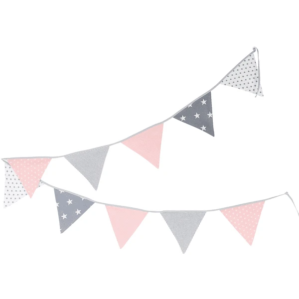 Met de vaantjesketting krijgt u een geweldig decoratie-element voor verschillende toepassingen. In de kinder- en babykamer is de stoffen vaantjesketting een decoratief wandelement dat perfect past bij andere producten uit deze ULLENBOOM serie. Design Als baby’s Girl trekken de stoffen driehoeken, die gemakkelijk in de lucht bewegen, de aandacht van de baby en zorgen voor spannende activiteiten.