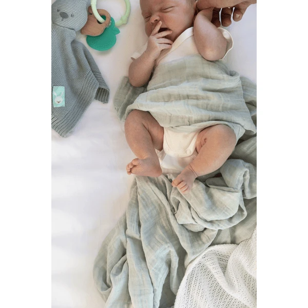 Het muskusdeken van biologisch katoen is koel en zacht voor de gevoelige huid van de baby. Dankzij zijn goede maat kan de muskusdeken ook als sjaal worden gebruikt en geeft het de baby gemoedsrust bij het geven van borstvoeding. Wikkel je baby in de deken van mousseline als het tijd is om uit te rusten.
